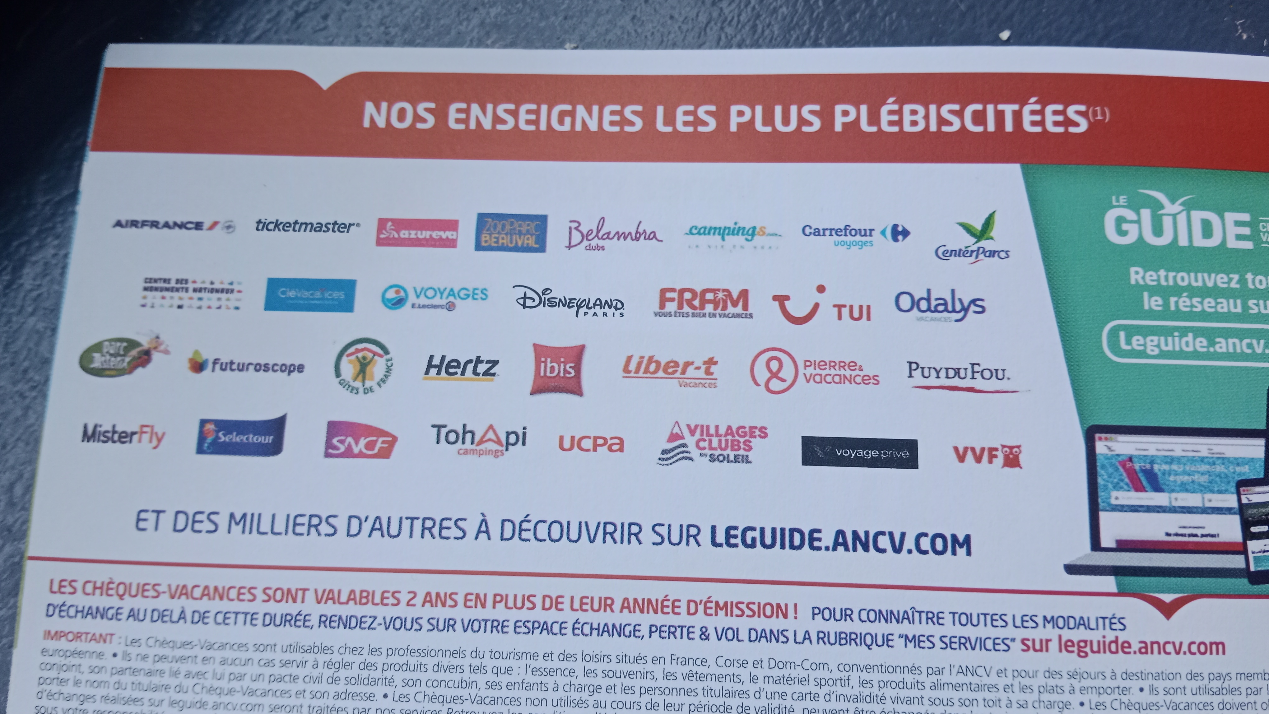 Pour savoir ou les utiliser, chercher sur le net. Metrre ou utiliser les chèques vacances ANCV mais il ne faut pas hésiter à demander partout, toutes les enseignes ne sont pas toujours référencé. Comme les restaurants non franchisé, les zoos et encore bien d'autres lieux.